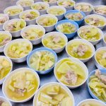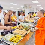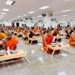 – ถวายภัตตาหารเพล ประกอบด้วย: น้ำพริกกะปิ+ผักรวม – ขนมเปียก กล้วยหอม – ฝรั่ง – มันนึ่ง และน้ำสมุนไพร