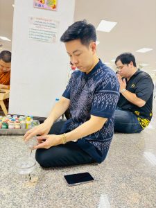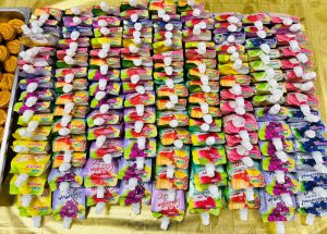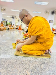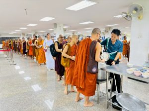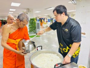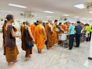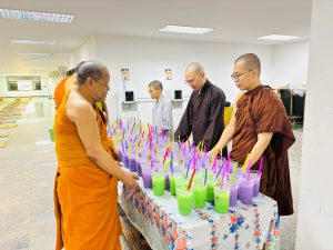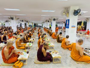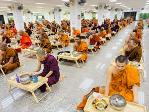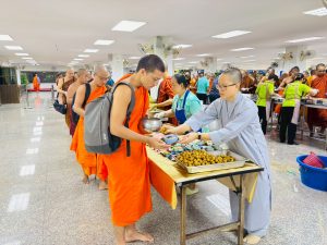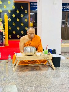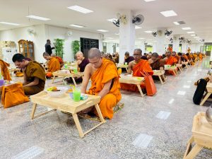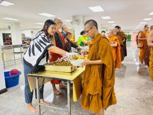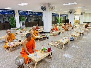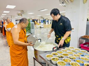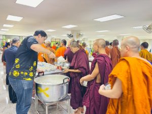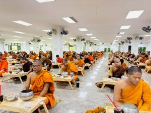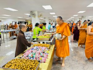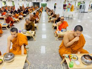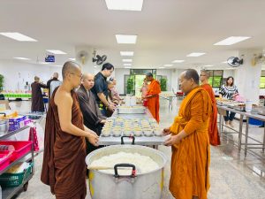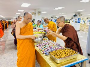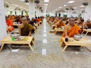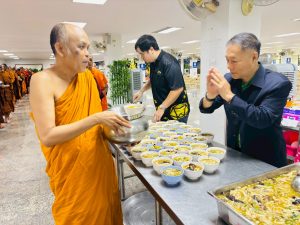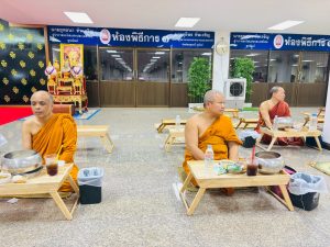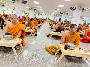 -ถวายภัตตาหารเพล ประกอบด้วย ไข่ต้ม 600 ฟอง – ขนมโมจิ – เจเล่ไลท์ – ชานมไข่มุก