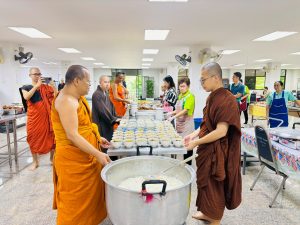 – ถวายข้าวเหนียวเปียกลำไย กับ ครองแครงกะทิสดจำนวน 200 ถ้วย