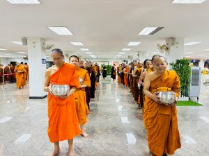 #ผู้บริหาร คณาจารย์ เจ้าหน้าที่ พระนิสิต รับบิณฑบาตฉันเช้า จำนวน 330 รูป