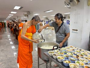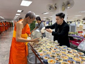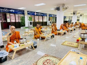 ถวายภัตตาหารเพล ประกอบด้วย: – แพนงหมู – ต้มจืดเต้าหู้ไข่ – ยำวุ้นเส้น