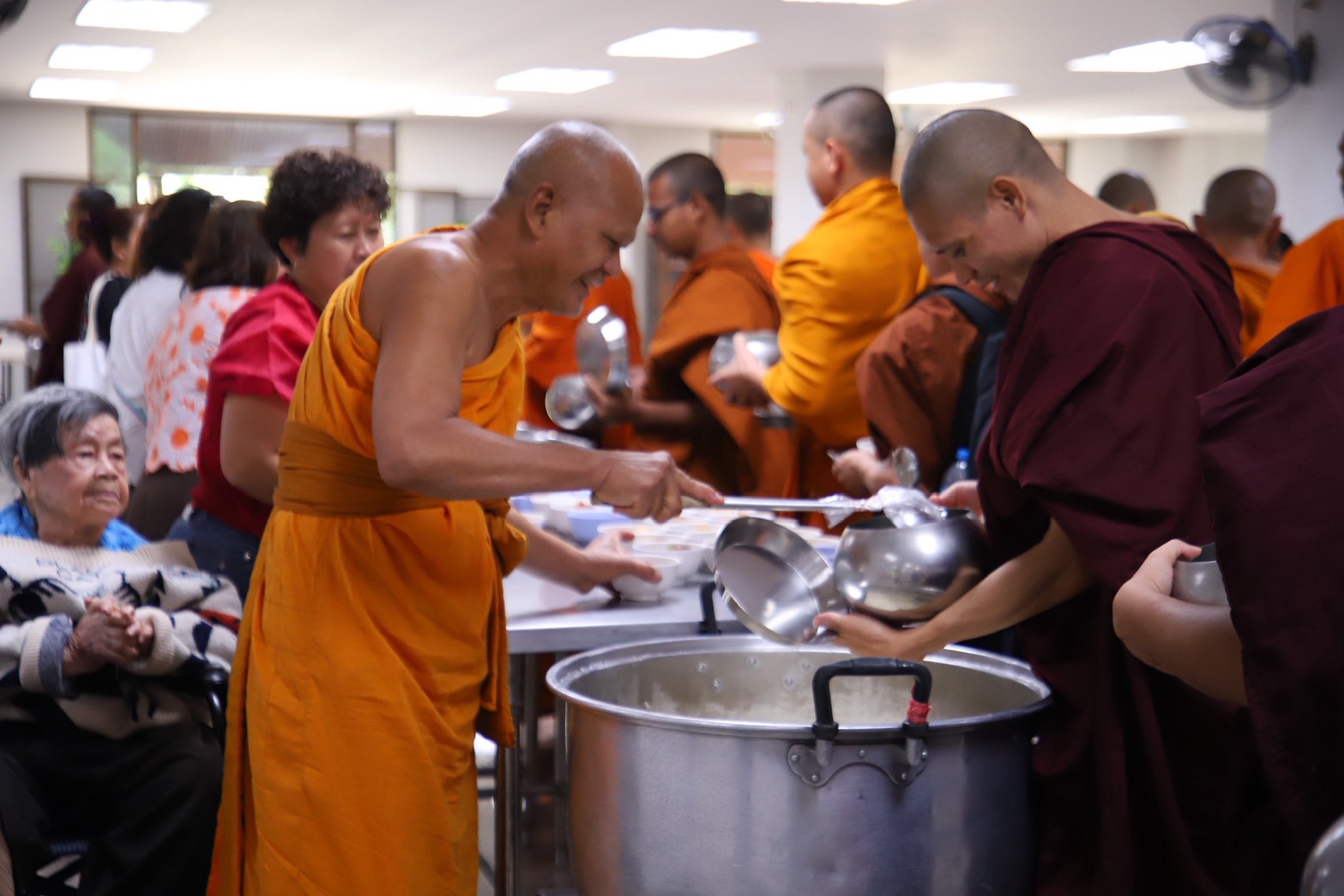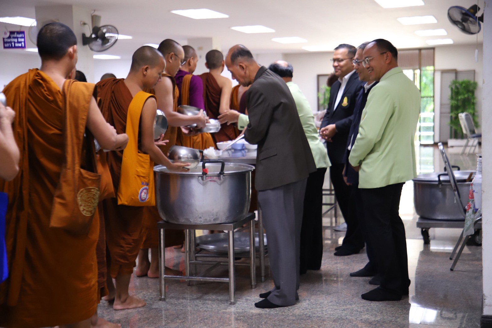 #ผู้บริหาร คณาจารย์ เจ้าหน้าที่ พระนิสิต รับบิณฑบาตฉันเช้า จำนวน 170 รูป ฉันเพล จำนวน 209 รูป รวมทั้งสิ้น 379 รูป ณ อาคาร 72 ปี พระวิสุทธาธิบดี ชั้น 2 ตำบลลำไทร อำเภอวังน้อย จังหวัพระนครศรีอยุธยา