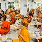 – ถวายภัตตาหารเพล ประกอบด้วย : กระเพาะปลา – ข้าวต้มมัด – น้ำดื่ม – ผลไม้ส้ม