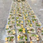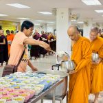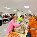 ถวายภัตตาหารเพล ประกอบไปด้วย : ข้าวขาหมูจำนวน 300 กล่อง กับ บ๊ะจ่างเจ