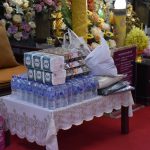 ถวายน้ำดื่มจำนวน 6 แพ็ค – ไข่ไก่จำนวน 3 แพ็ค – เครื่องปรุงอาหาร