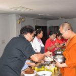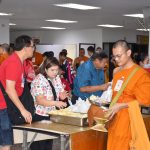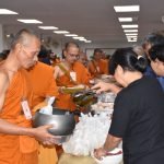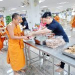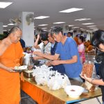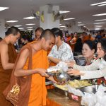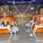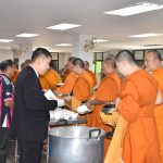 ถวายภัตตาหารเช้า ประกอบไปด้วย : ขนมครกจำนวน 250 ชุด ยาคูลท์จำนวน 250 ขวด