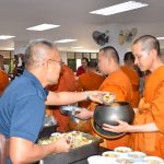ถวายภัตตาหารเพลประกอบด้วย : หมูปิ้งนมสดจำนวน 200 ไม้ – กะหรี่ปั๊บจำนวน 230 ชิ้น- ไอศกรีมจำนวน 274 ชิ้น