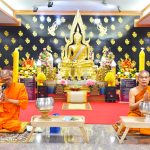 -ถวายภัตตาหารเพล ประกอบด้วย: – แกงเลียง – หมูพริกไทยดำ – ผัดผัดกาดผัดไข่ – กุ้ยช่าย – ขนมเต้าส่วน และ ผลไม้ ชมพู