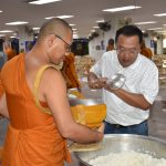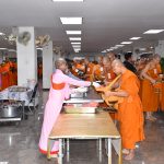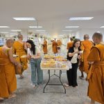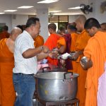 – ถวายน้ำลำไยจำนวน 300 แก้ว กับ ขนมปัง หมูหยอง สังขยา ชานม จำนวน 250 ชิ้น
