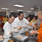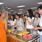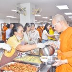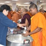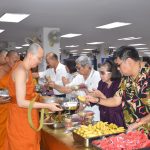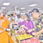 ถวายภัตตาหารเพล ประกอบด้วย : หมูปิ้ง-ข้าวเหนียว – เหนี่ยวทรัพย์ – ขนมสังขยา