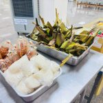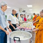 ถวายภัตตาหารเพล ประกอบด้วย : ต้มฝักมะนาวดอง ยำไข่ดาว