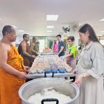 ถวายแกงฟักทอง นมเปรี้ยว น้ำดื่มจำนวน 40 แพ็ค